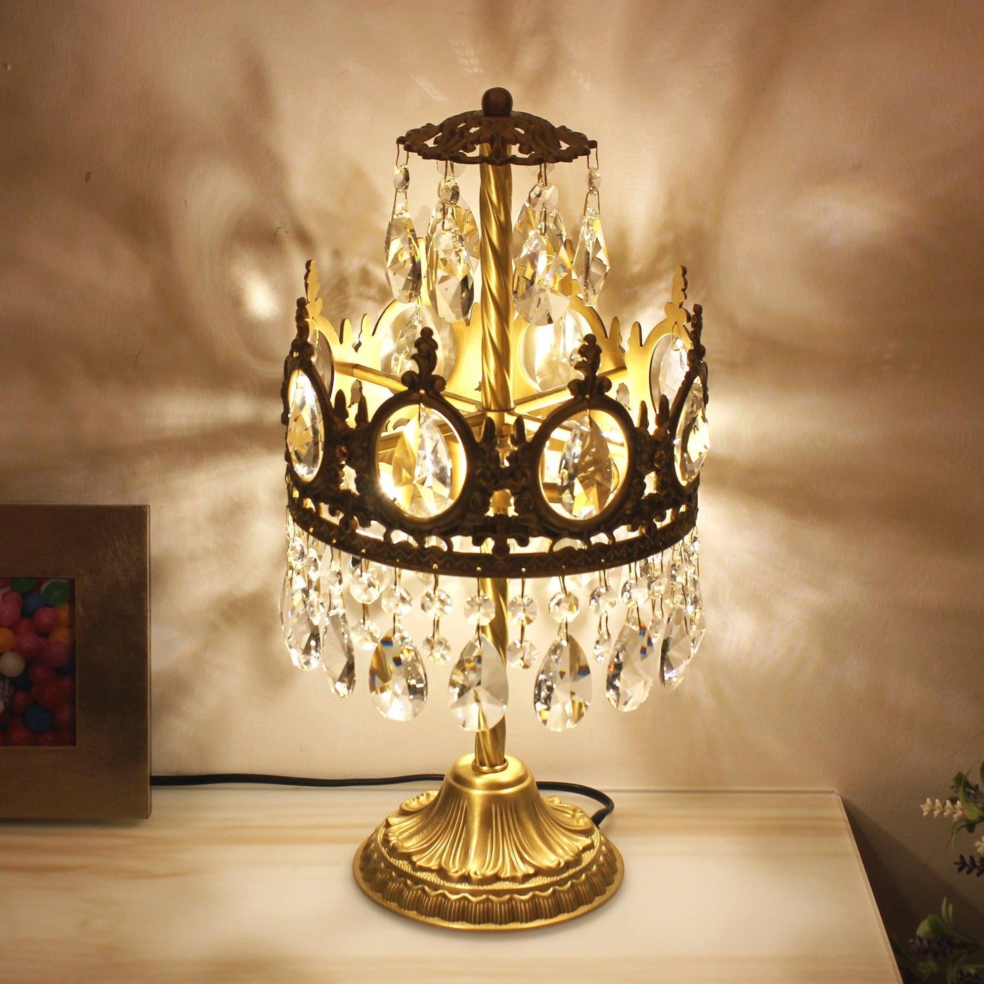 This table lamp captures old-world charm through shimmering crystal details and a refined metal frame. When lit, the cut crystals reflect light beautifully, creating a soft sparkle that feels elegant rather than ornate. It’s a graceful accent for bedside tables or sideboards where a touch of vintage-inspired character is desired.